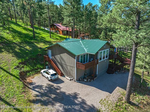 Views! Views! Views! Sierra Blanca, Mountain Ranges & Towering trees... Updated, Immaculate Mountain Home on a large lot.... 3 Bedroom, 2 Bath, home nestled on a hill in Country Club Heights. Partially Furnished. Enjoy the Mountain Air, Abundant Wildlife that roam & the variety of birds from the Front Deck. Master Bedroom Balcony and back Deck Trex. Central A/C, Gas Log Fireplace, Beautiful floors, Lots of Natural Light thruout. Attractive waterproof laminate wood floors. The hot tub stays! **New Triple Pane Windows! Exterior Painted in 5-24. Front deck sealed in 25. Front staircase recently painted. Wonderful underneath space that is cool in the summer & warm in the winter;Workshop, Storage or Hobby area, This One is A Must See!! **Shown By Appointment