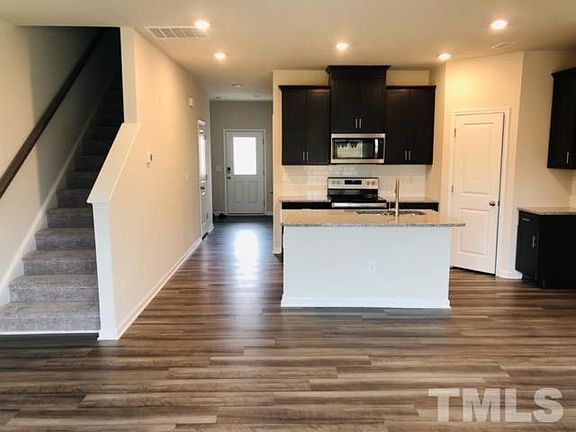 Available NOW! This NE facing energy-efficient 3 bedroom townhome is located in South & Main. Laminate hardwood throughout 1st fl. Luxury kitchen with white cabinet , quartz counter top and kitchen island. Stainless steel appliances, back splash and recess can lights. Walk in closet, dual vanity and standing shower in Master bath. Spacious loft on 2nd fl. Enjoy convenient access to downtown Fuquay Varina, wake county schools and highways.