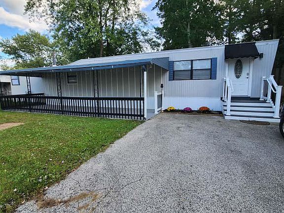 Welcome to this updated 2 bed, 1 bath mobile home in Colonial Estates. Recent upgrades include all new flooring throughout, new appliances, a stackable washer and dryer, a new hot water heater, and many updated windows. The exterior features a resurfaced and painted patio, Trex deck entrance, and replaced front siding. Inside, you’ll find an open concept living and dining area, a unique kitchen layout, closets in both bedrooms, and an updated bathroom. The AC/heater unit is only a few years old and custom crown molding adds a finished touch. Make your appointment to see it today.