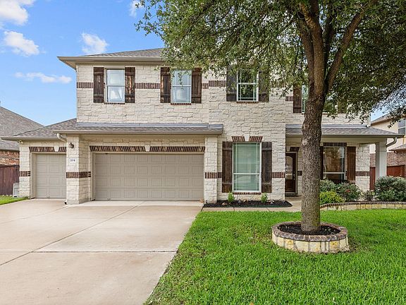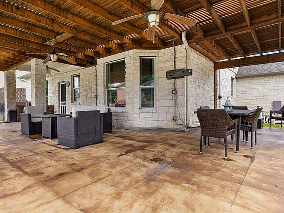 One of the best prices and deals in the area! Impressive 4-bedroom, 3.5-bathroom home with a game room, media room and a pool. ~3,091 sq. ft. of functional living space, including a rare 3.5-car oversized garage (778 sq. ft.) with workshop area and flat driveway. Located in the highly sought-after Parkside at Mayfield Ranch community - such an amazing community feel with exceptional schools. Built in 2010 and situated on a generous lot, this home features a private $100K backyard oasis with a pool and water feature, a huge, covered patio with arbor and built-in grill. Inside offers a well-designed layout with ~1,669 sq. ft. on the main level and ~1,422 sq. ft. upstairs. The main level includes the primary suite with bay window, spacious formal dining, under-cabinet lighting, and updated finishes throughout. Upstairs you'll find a large game room, a separate media room, large bedrooms and a walk-in attic for extra storage. Newer roof (3 years old). Price reflects carpet needing replacement which is an opportunity to personalize. Enjoy two neighborhood amenity centers, highly rated nearby schools within walking distance, and proximity to shopping, dining, trails, and top employers. Easy access to major roads including Ronald Reagan Blvd, SH-29, I-35, and 183 Toll. Located in the county—lower tax rate (buyer to verify all information). This home delivers a rare combination of functional space, community amenities, and convenience in a high-demand neighborhood. Virtually Staged: Digital furnishings shown to suggest space use. Buyers to verify all information