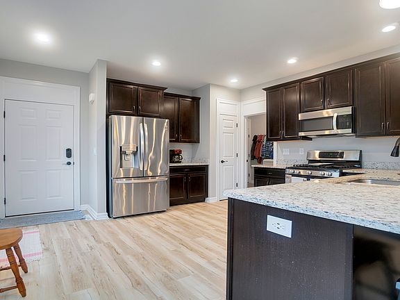 Snow is coming soon...tired of shoveling yourself? Time to buy this stunning 6 year old 2 BR, 2.5BA condo in Oregon. Main living area has an open floor plan and had new LVP flooring installed ('22). Kitchen has beautiful tall dark cabinets, plenty of granite countertops with a breakfast bar with seating, pantry and SS appliances. The dinette area could have a table and flows into living room which has a slider to deck overlooking the private backyard. Laundry room is off the 2 car garage and includes newer washer/dryer ('22). Master bedroom has an en suite bathroom with double vanity. Large walk-in closet in MBR. Lower level has plenty of room to entertain with a huge family room and egress window, 1/2 bath and an office which could be used as a bedroom. Zoned heating/cooling for each level. Ring doorbell & Nest thermostat (not used). New roof 2023, As mentioned, Association will do plowing and mowing.