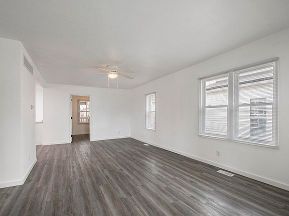Totally remodeled top to bottom! Rare find within walking distance to library and downtown. Fenced yard, covered porch, new flooring and windows through out along with new furnace, ac, appliances etc.. 3 bd 1 bath, large eat-in kitchen plus living room, full basement and so much more! This house makes home ownership affordable!! Basement does get damp in one area with heavy rains.
