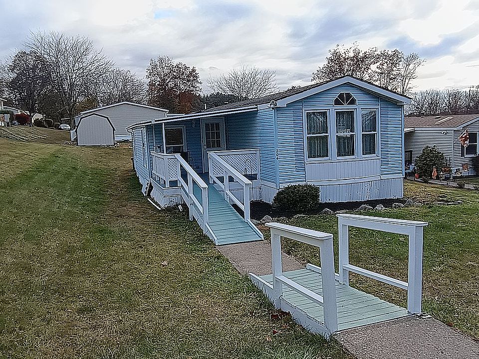 as well as front and rear porch for outdoor living. As well as an outdoor shed with power giving the space you
