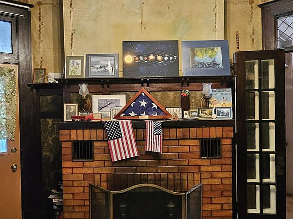 Fireplace in one bedroomParlor with fireplacePrivate covered porchDining roomLaundry room