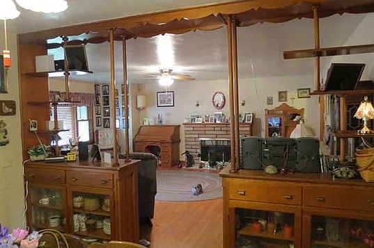 This neat and clean 4BR 2BA home features hardwood floors throughout the main level. The spacious living room has a decorative electric fireplace and bay window. The formal dining room is just off the kitchen that has tile flooring and a neat breakfast nook! The 3rd BR is currently used as sitting room. Laundry is on main floor. The basement has a huge 30x14 family room with decorative pot belly stove, bedroom, bath, and large storage room. It also has gas furnace and small gas range and oven to keep things warm if electricity is out for extended period. All this sets on a corner fenced lot with irrigation well & sprinkler. It has a carport and an oversized 1 car garage that has work area with old church cabinets galore besides two garden sheds. Great home in great town with great schools! All info deemed reliable but not guaranteed.
