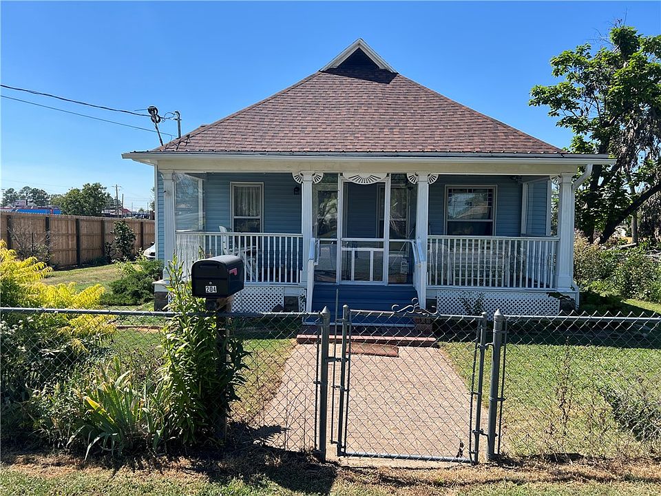 House is zoned Residential/Office. Charming older home in great location. 2 bedrooms, 1 bath and sunroom. Hardwood floors, open floor plan and lots of windows. New roof. New water heater. Beautiful, landscaped yard and covered front porch. 2 level storage building has electric. New gutters installed in 2020, plus the underside of the back porch was replaced.