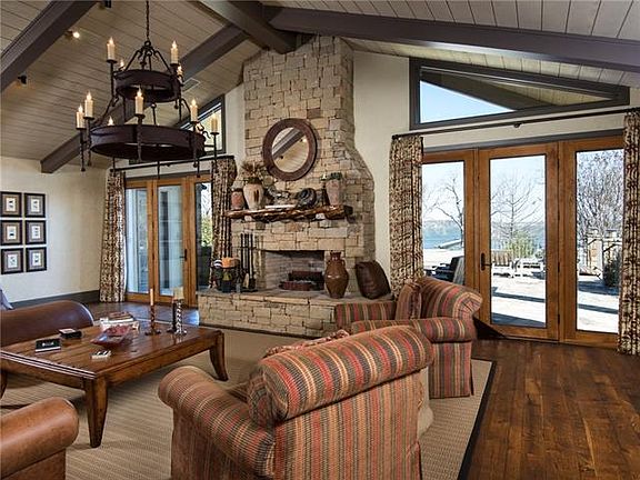 Show Stopper! Extraordinary lake retreat on 1.2 acres with boat ramp, covered boat house with two boat lifts and two skidoo lifts. Outdoor kitchen with fireplace and grill. Stunning home with massive rock fireplace and entertainment center in den, separate game room plus fireplace in entry area. Fabulous kitchen with 4x6 island, adjoining breakfast nook and wet bar. Four large bedrooms, one with fireplace plus four baths. Stunning views of main body of lake.