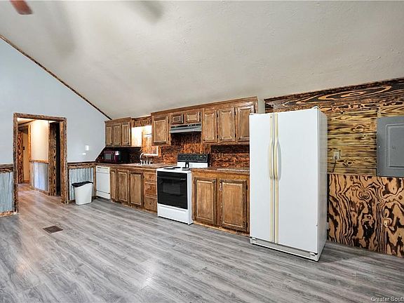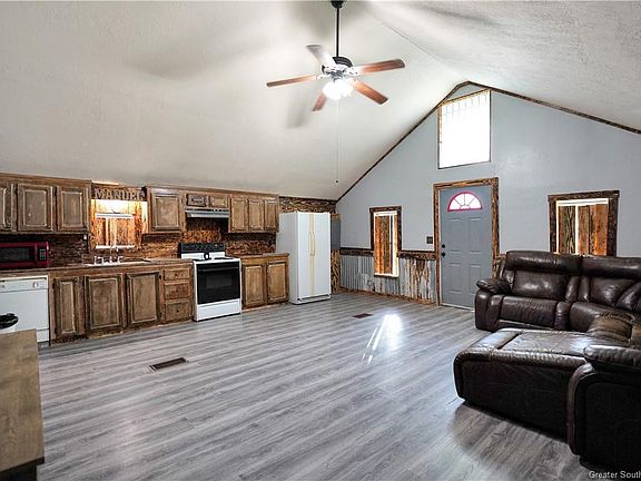Charming 2-bedroom, 2-bathroom log cabin with an open kitchen and living area, perfect for cozy living or entertaining. The primary bedroom boasts cathedral ceilings and a stunning rustic-style bathroom featuring a soaker tub and separate shower. The second bedroom includes its own updated private bath. Outside, enjoy a screened porch or step out to an open-air section to soak in the fresh air. Attached to the carport is a fully updated space ready to serve as a workshop, storage, or whatever suits your needs. Property is being sold AS-IS. All measurements are approximate and should be verified by the buyer.