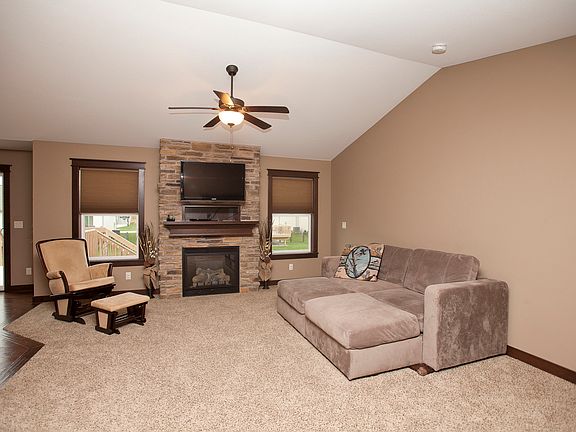 Sweet Home Grimes! Nestled in a cul-de-sac of a great family-oriented neighborhood, the gorgeous features of this home start at the curb; stone accents, maint-free vinyl siding, big front porch & great landscaping. Inside you're greeted by a wide entrance that leads into the main living area where the focal point is a stunning floor-to-ceiling stone FP. View the photos for the modern appointments; granite, glass tile, SS appliances, rich wood trim, neutral paint. Popular split bedroom floor plan. Master suite flows smoothly from the bedroom to the bathroom & walk-in-closet connected to the laundry/mud room. Spacious finished basement with room to spread out plus a 4th bedroom & 3/4 bathroom, yet still tons of storage space. Combined nearly 2,400 SF of finished living area (bsmt SF per seller). Economic tankless HWH. New 12'x12' wood deck. New carpet going in main LR, hall & stairs. Nearby pond & walking trail, seconds away from North Ridge Elem School & Grimes North Sports Complex.
