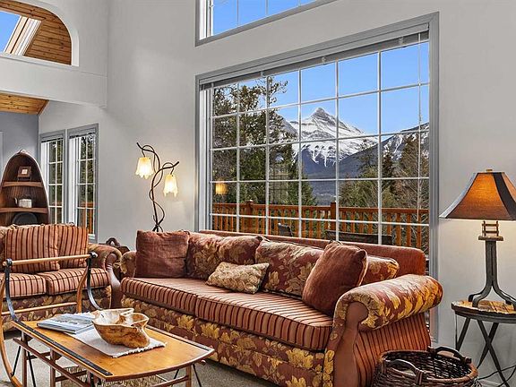 Epic mountain views and timeless character define this stunning 2400 sq ft home, hugged in mountain light with a perfect blend of forest and and south west peak views including 3 Sisters and Lawrence Grassi . The main level welcomes you with a generous foyer and leads into a great room flooded with natural light and a feeling of space with soaring ceilings. A floor-to-ceiling stone fireplace with custom millwork anchors the living area, setting the tone for cozy mountain evenings. The massive kitchen offers an eat-up bar, abundant cabinetry, and a dining area wrapped in windows — the perfect place to gather and take in the views. Upstairs, the primary suite has an ensuite and office nook open to the main level. The walkout level features three additional bedrooms, a large family room, and full bathroom plus access to a tranquil lower patio surrounded by forest. Outdoor living is exceptional with a wrap-around front verandah for sunrise coffee, a sunny back deck for BBQs, and a lower area ready for your own Nordic-style spa — space for a hot tub, cold plunge, and sauna. The yard feels like you’re alone in nature, yet you’re just a short stroll from downtown Canmore’s cafés, trails, and shops. This well-cared-for home is far from cookie-cutter — a true mountain escape that blends thoughtful design, privacy, and that one-of-a-kind feeling of light, calm, and connection to nature only found in the Rockies.