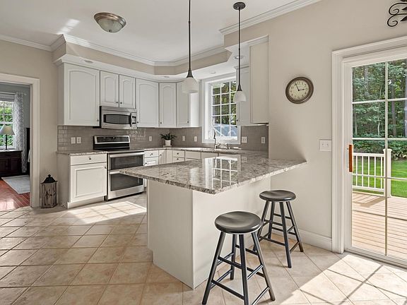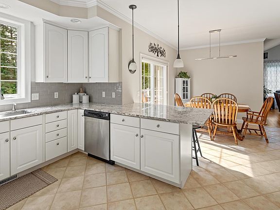 Picture perfect and in immaculate condition, this lovely 3 bedroom home has all the bases covered. The first floor owner’s suite has a its own door to the back deck and a newly renovated bathroom with a walk-in tiled shower and double sinks. The freshly painted living room has a vaulted ceiling and gas fireplace. French doors lead from the living room to a beautiful sun room that overlooks the back yard. No home should go without a pantry or mud room, and this one has both. The kitchen has plenty of cupboard space and an eat-at counter between the kitchen and dining room. Sliding doors in the dining room lead out to an expansive deck that comes with an a wide awning that covers over half the deck when lowered. Two more bedrooms are upstairs, along with a charming sitting area and full bath. The finished basement has an open floor plan and the space is set up for entertaining, with a TV/movie area with built-in shelving, game area, and gas fireplace. Pull a stool up to the bar, which comes with a sink, and seating for 3 or more. The house is wired with surround sound on the main floor, back deck, and lower-level. A 2-car garage and fetching shed round out this sweet package. Plus, it’s located in a desirable neighborhood, close to schools, Mallett’s Bay, bike paths, the Colchester Causeway, and one of the best farm stands around.