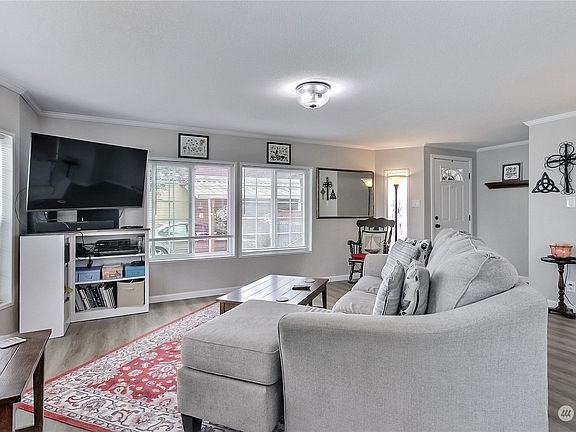 Just what you were searching for! Fully updated doublewide located in Mountain Meadows, close to everything in Enumclaw. Enter into open concept great room w/light streaming in. You will love the spaciousness of this home. The built-in buffet in the dining area is perfect for entertaining. The kitchen boasts newer cabinets w/soft close doors & drawers, countertops, deep soak sink & SS appliances. Vinyl plank flooring throughout. Primary suite & bath have been updated. Large closets w/plenty of storage. Guest bedrooms & hall bath were included in all the updates. Laundry room, 2+car covered carport, workshop/storage at back of home. Covered, updated deck to enjoy the fully landscaped lot & foothills trail is right there for you to explore.
