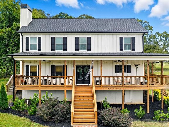 Welcome to scenic Nelson, Georgia! This custom-built 2023 home perfectly blends small-town charm with modern design. Featuring 3 bedrooms, 2.5 bathrooms, and 2,064 sq. ft., this thoughtfully designed two-story home sits on a corner quarter-acre lot in beautiful Pickens County. As you arrive, you’ll be greeted by an inviting wraparound porch—the perfect spot to relax and take in the views. The walkway is accented with 100-year-old reclaimed brick from a historic chimney, giving the home a timeless touch of character and history. Inside, the main level showcases an open and welcoming layout. The primary suite is conveniently located on the main floor and features a walk-in closet plus private deck access for morning coffee or evening relaxation. The primary bath includes dual granite vanities and a tiled walk-in shower. The family room offers a cozy fireplace for gathering, while the chef’s kitchen impresses with white cabinetry, granite countertops, ample storage, and a spacious dining area. You’ll also find a walk-in laundry room and a half bath—ideal for guests. Upstairs are two generous bedrooms connected by a Jack-and-Jill bathroom with granite countertops and a tiled tub/shower combo. Enjoy peace and quiet with no noise from the nearby marble quarry, and take advantage of the community park and playground just moments away! This location truly has it all—minutes to downtown Ball Ground for shopping and dining, and quick access to I-515 for easy travel north to Jasper, Ellijay, or Blue Ridge, or south to Riverstone Parkway in Canton. Don’t miss your chance to own this stunning custom home combining charm, convenience, and quality craftsmanship in the heart of Nelson, Georgia!