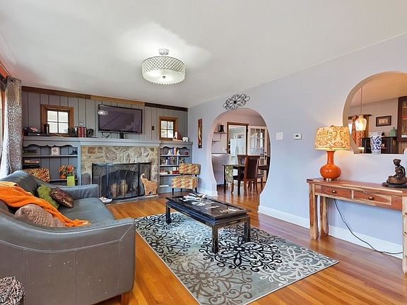 WARM AND INVITING COLONIAL WITH MODERN UPDATES, INCLUDING AN OPEN FLOOR PLAN WITH STAINLESS APPLIANCES, LOVELY COUNTER TOPS, BACK SPLASH, WOOD FLOORS, GREAT LOCATION, BRIGHT, OPEN AND AIRY! INCLUDES 3 BEDROOMS, LVING ROOM, WOOD BURNING FIREPLACE WITH STONE SURROUND AND LARGE MANTLE, DINING, EAT IN KITCHEN BAR, SUNROOM, CLEAN BASEMENT, LAUNDRY, 2 BATHS, SPACIOUS DECK AND MUCH MORE!
