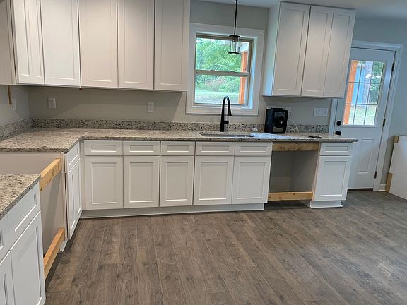 This home has been completely redone. New hvac, cabinets, granite, floors, appliances, light fixtures, hot water heater and windows! Big country front porch and covered back porch. Comes with storage building and carport. Master bathroom has separate big shower and stand alone tub and double vanities. Large closet.