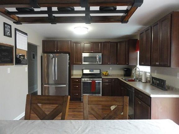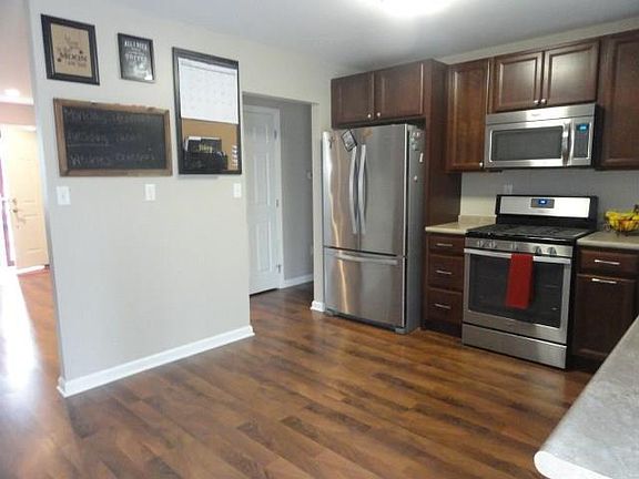 Totally updated ranch located on a cul-de-sac street! Open concept floor plan! Beautifully updated, fully-equipped kitchen features stainless steel appliances! Sliding patio door with encased mini-blinds opens to a 26x14 railed deck overlooking a level lot that backs to woods! Spacious finished basement features GR, separate laundry room, and gorgeous full bathroom with walk-in shower! May as well be new! Newer roof, siding, windows, 200 amp electrical, kitchen, bathrooms, furnace, central AC, HWT, laminate flooring (2015). Neutral w/w in bedrooms and GR! A must see!