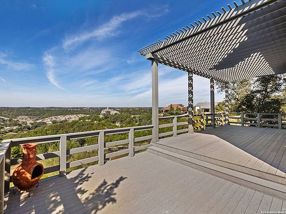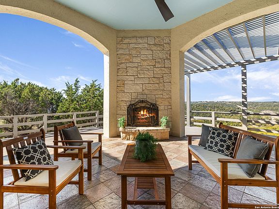 VIEWS! Be wowed by one of the most amazing VIEWS in all of Boerne! Discover an enchanting 4,335 sq ft, 3 car garage, 1.5-story haven on an oversized one-acre lot within The Ridge at Tapatio Springs. This splendid home features 3 beds, 4 baths, including a lavish master suite, wine room, open floor plan, stately floor-to-ceiling stone fireplace in the living room with stunning views, grand ceilings, and abundant natural light. Each window frames captivating hill country panoramas, seamlessly blending indoor elegance with nature's grandeur. Impeccable design flows throughout, combining contemporary opulence with organic charm. Looking for a space for aging parents or a mother-in-law suite? Need a multigenerational living situation? The third bedroom with private bath, upstairs private loft, nearby sink area, and exterior door could function as a perfect living space for such a need. This stunning home is a must see!