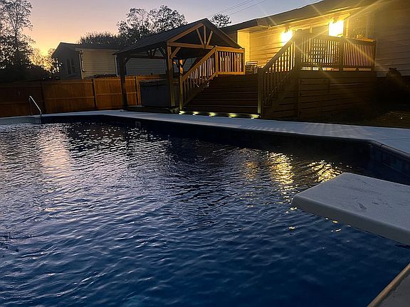 Sliding doors open to a large deck overlooking the newly fenced backyard living area with a 20x40 in ground pool, large jacuzzi hot tub under a separate gazebo or sit by the Cozy firepit