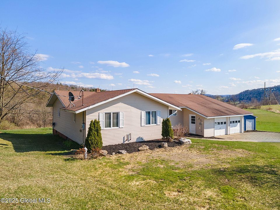 Welcome to this lovely 3-bedroom, 2-bath, 1,560 sq ft Ranch home, perfectly positioned to capture sweeping skyline views of majestic mountains and serene valleys. Step inside to a warm and inviting family room featuring a cozy wood-burning fireplace, ideal for relaxing evenings. The home also offers a formal dining room and a comfortable living room, creating wonderful spaces for both everyday living and special gatherings. Updated bathrooms, newer roof and siding, conveniently located just outside the Village of Cobleskill. Easy to maintain one floor living. The attached 2-car garage provides convenient parking and extra storage. Nature lovers will appreciate the beautiful garden and the stunning panoramic views just steps from the door. Charm, comfort and scenery. A must see!