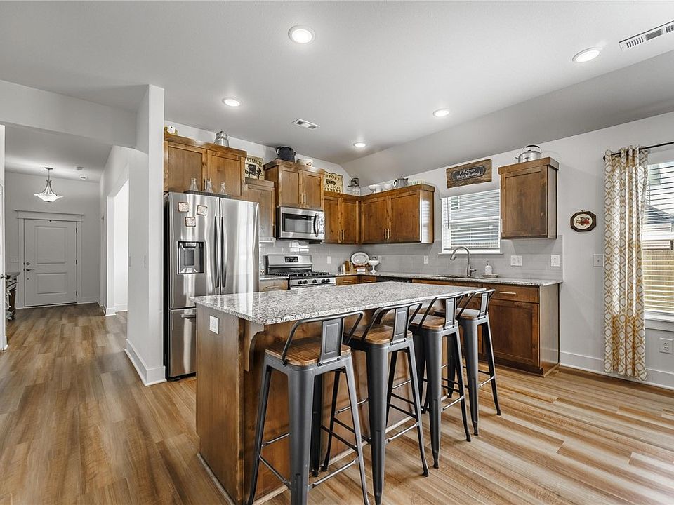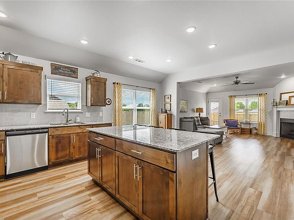 Beautiful like new home in Snyder Grove..Enjoy the open, light and bright living room with gas fireplace boasting shiplap accents above. One story home with eat-in kitchen overlooking backyard & covered patio. Kitchen has tons of counter space with large island, granite, gas range, cabinets with storage and pantry. Open concept that's perfect for entertaining. Spacious master bedroom with large master bathroom with beautiful custom barn door slider. Master bath has walk-in shower, tub and walk-in closet. Perfect space to entertain with a formal dining room. Great backyard on a nice flat lot! Large 3 car garage. Perfect location with easy access to Delford Rieff Park, Prairie Grove Aquatic Park and Highway 62.