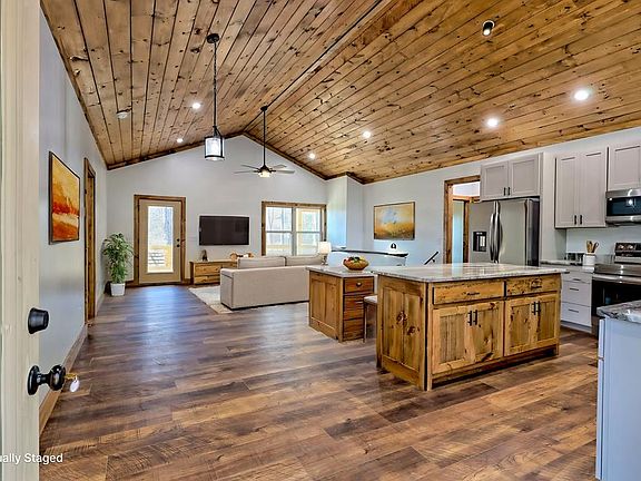 This incredibly stunning new construction home offers 3 spacious bedrooms, 2 full baths, and a range of thoughtful amenities that make it ideal for modern living. Enjoy a well-designed layout that includes a large kitchen island, a convenient butler's pantry, and a laundry room with an exterior entrance for easy access. The great room features vaulted wood ceilings, adding warmth and charm to the space. Below, a full unfinished basement provides endless possibilities for storage or customization, allowing you to create the space that suits your needs. Nestled on a gentle, wooded lot, the property offers a tranquil setting with a babbling branch and backs up to US Forest Service land, providing the ultimate in privacy and a close connection to nature. Situated at the end of a quiet road, it combines the serenity of mountain living with easy access to Hwy 515, making it perfect for both weekend getaways and permanent residence. This home is a unique opportunity to enjoy the best of both comfort and natural beauty.
