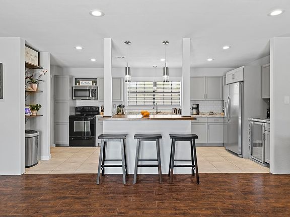 Welcome to your charming home in the heart of Burnet! This delightful home sits on an oversized lot within the city limits, providing you with both convenience and a tranquil country feel. Boasting recent updates, this 1,492 square ft residence offers a perfect blend of modern comforts and rustic charm. Step inside and fall in love with the beautifully updated kitchen, featuring sleek countertops, contemporary cabinetry, and updated appliances. The adjacent living area to the kitchen provides a cozy space for relaxation and entertainment, with plenty of natural light filtering through the windows. Indulge in the updated bathroom completed with modern fixtures and a stylish vanity. Every aspect of this house has been carefully designed to provide comfort and functionality for its residents. The oversized lot offers ample space for outdoor activities or gardening, and the peaceful surroundings create the perfect setting for relaxation. Adding to the appeal, this home is not part of any homeowner's association, providing you with the freedom to customize and personalize your property as desired. Furthermore, the garage is equipped with its own sink and fridge, making it a versatile space for projects or hosting gatherings. Embrace the convenience and modernity with all lights connected to a smart home app, allowing you to control the ambiance and energy-saving features with a simple touch. Make this Burnet residence your own!