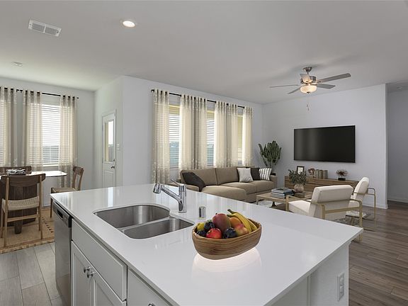 Inside, the thoughtful split-bedroom layout offers comfort and privacy, with carpet only in the bedrooms. The bright and inviting kitchen features a large corner pantry, gleaming white subway tile backsplash, gas range, stainless steel appliances, and a generous island—perfect for hosting, everyday use, and holiday gatherings.