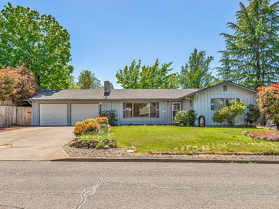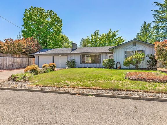 This home is in a nice Central Point location, close to Scenic Middle and Crater High School, and on a quiet street surrounded by well-kept homes. It has a huge back yard with room for an inground pool or a huge shop (buyer to do due diligence) with a fully fenced back yard, and landscaped front yard, a two-car garage, and a roof that is nearly new. Inside, there's a large living room with a wood-burning fireplace, a kitchen with a black oven, and vinyl flooring in the kitchen and hallway. There are three bedrooms with real hardwood floors that have been recently stained, and the front bedroom has a half bath that would work well as a primary suite. The full bathroom has a tile-surround tub. The home has forced heating and air-conditioning, a covered back patio, and the garage is oversized with a small workshop area. Tons of potential with this home!