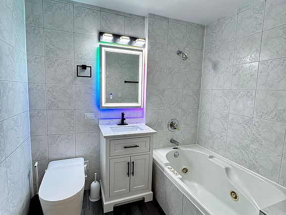 Just minutes from Chicago O'Hare International Airport, and easy access to Downtown Chicago. This expansive 7,500 sq. ft. luxury home offers 11 spacious bedrooms with 12 king beds, Sleeps 24+ and 7 modern bathrooms all equipped with high-end Japanese toilets featuring built-in bidets, heated seats & Dryer. Enjoy open-concept kitchen, two living areas each with 85" Smart TVs, plus Smart TVs in every bedroom. Massive patio and a fully fenced backyard nearly an acre in size.