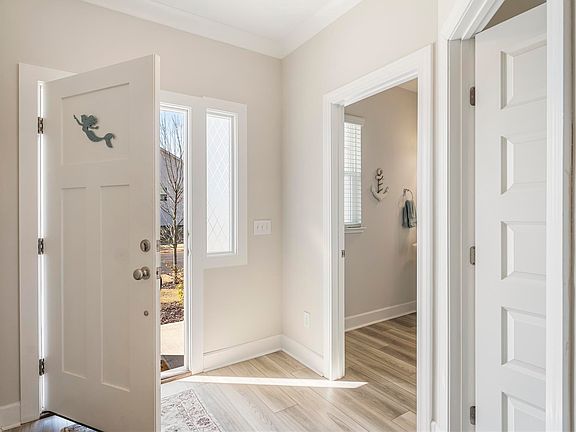 Discover this beautifully designed Monterey-style home in Holly Ridge, offering the perfect blend of custom-curated finishes, modern comfort, and serene natural surroundings. With 3 bedrooms, 2.5 baths, and approximately 2,200 sq. ft., this spacious home sits on a beautifully landscaped lot with a wooded backyard—a peaceful retreat where you can relax on the patio or lounge chairs and enjoy visits from forest wildlife. Step inside to an open, light-filled floor plan with abundant windows and thoughtfully selected details throughout. The elegantly appointed kitchen features shaker-style York Drift–stained cabinetry, Biscotti White granite countertops, a large center island, matte black hardware, under-cabinet LED lighting, and all stainless GE appliances, including a gas range—perfect for cooking and entertaining. Another awesome feature is that all appliances will convey, including the fridge, washer, and dryer so it's move in ready!! Flowing seamlessly from the kitchen, the dining room opens into an inviting living room creating a warm and welcoming atmosphere. The first floor also offers a versatile bonus room/home office, ideal for a Zoom Room, or creative studio, along with a convenient half bath. Upstairs, all three bedrooms are thoughtfully located along with the laundry room for ultimate convenience. The spacious owner’s suite features a tray ceiling, LED lighting, ceiling fan, a grand walk-in closet, and a luxurious en-suite bath with a walk-in shower, separate soaking tub, and a double-sink vanity. A cozy second-floor loft adds even more flexible living space—perfect for a TV den, reading nook, or relaxation retreat. Throughout the home, you’ll find stunning 5” wide Polaris Lighthouse luxury vinyl plank flooring in the main living areas and plush Shaw carpet in the bedrooms and loft. Step outside to your private patio just off the dining room, ideal for outdoor meals and quiet evenings under the stars. Located in a wonderful community with a pool and walking trails, this home offers beauty, comfort, and convenience—all in a prime Holly Ridge location.