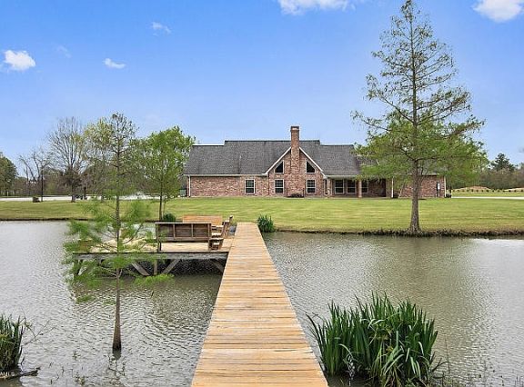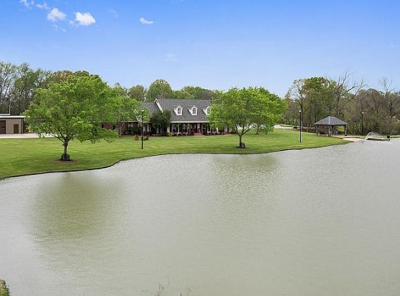 This wonderful home has it all. It is a retreat on 15.7 acres of rolling hills and professionally landscaped grounds comes with two fully stocked lakes (exterior lighting around the front lake and sand beach) large deck and cabana, large workshop with parking garage for 4 vehicles for parking plus large RV bay. Large carport is attached to the main house and there is a bricked walk around to the front doors. Large covered outdoor cooking area attached to the workshop/parking garage and separate storage in the rear. This home features open split floor plan with sleeping areas on the opposite side of the large open LR, DR and kitchen areas. The LR has 23' high cypress cathedral ceiling, a loft and cypress walls and oak floors with a large wood burning fireplace. Schedule your tour today.