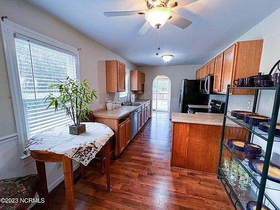 Escape to the serene embrace of our charming country-style bungalow, nestled amidst picturesque landscapes. Welcome to a tranquil haven where the essence of rural living meets modern comforts. With a thoughtfully designed layout, every corner exudes a homely charm that instantly puts you at ease. Relish in the open-concept living space that seamlessly blends the kitchen, dining, and living areas with hardwood floors. Cook up a storm in the kitchen, complete with all the stainless steel appliances you need to create culinary delights. As the sun sets, retreat to the comfortable bedrooms that provide a peaceful sanctuary for a restful night's sleep. Head outside to the idyllic porch, where you can sip your morning coffee as the world comes to life. The expansive yard offers endless possibilities for outdoor activities and gatherings, making it perfect for hosting friends and family. With several storage buildings and a detached two car garage, there is no lack of storage when it comes to this charming bungalow property. Located just minutes from CarolinaEast Medical Center, local shopping, restaurants, and nature parks! **Owner willing to consider package sale with additional lot at 202 S Glenburnie Road**