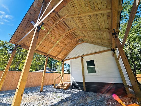 Charming 1950 Classic with Modern Farmhouse Flair describes this adorable home. This beautifully renovated 2-bedroom, 1 bath home is loaded with personality & style. Thoughtfully updated inside and out, it features a seamless blend of timeless charm and modern farmhouse finishes. Throughout the home, you'll find striking black and gold fixtures & brand-new windows and doors, and a fresh roof along with central heat and air for year-round comfort. The stunning kitchen and bath have been completely redone, boasting today's must-have features while keeping character at the forefront. You will love the new wood ceilings installed in most of the rooms and the shiplap siding that gives it today's modern flair. A spacious laundry room with a pantry/storage area adds functionality and convenience. Step outside to enjoy a brand-new deck and a freshly installed privacy fence to allow for outdoor living and entertaining and a new carport with a vaulted roof to keep you out of the elements. This move-in ready gem truly has it all - character, updates, and the perfect mix of classic and contemporary. The newly enclosed laundry room is not reflected in the reported sq ft of the home.