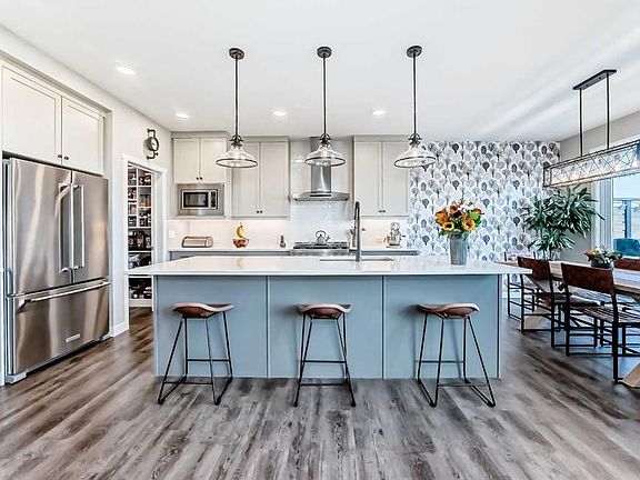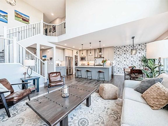 204 Sunrise Common is a remarkable home and offers over 2,100 sq ft of beautifully designed living space. It features a heated garage with an extended area, complete with a workshop space, an 8Ft door, a sink with hot and cold water access, and a separate side entrance for convenient yard access. The lovely backyard backs to a future walking path and green space, featuring a fantastic deck with a pergola, a built-in bar table, a gas hookup for a BBQ, and a fire table, making it perfect for outdoor gatherings. Inside, you'll be greeted by high ceilings, highlighted by a magnificent gas fireplace surrounded by floor-to-ceiling stone. A walkthrough pantry connects the garage to the kitchen, equipped with California closet organizers, ceiling height cabinets. Culinary enthusiasts will appreciate the six-burner gas range, built-in microwave, quartz countertops, and spacious island, all ideal for entertaining guests. James Hardie siding creates stunning curb appeal along with the landscaped yard Upstairs, a convenient laundry area features a countertop, and a built-in drying rack, enhancing the home's functionality. The bonus room boasts vaulted ceilings, creating an airy atmosphere while also offering scenic mountain views. All the bathrooms have quartz countertops with under mount sinks. The 4 pc primary ensuite features a fully tiled oversized shower and a dual vanity. The unfinished basement provides endless possibilities for customization to suit your personal style. This exceptional home perfectly blends comfort, style, and practicality, and is located near Ranchview K-8 School, St. Tim's 8-12 High School, shopping, walking paths, and parks in the family-friendly neighborhood of Sunset. Don’t miss this incredible opportunity—schedule your showing today!