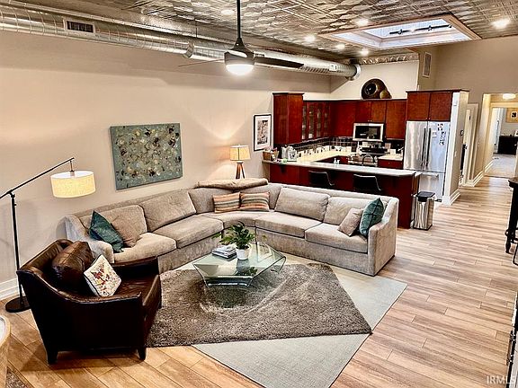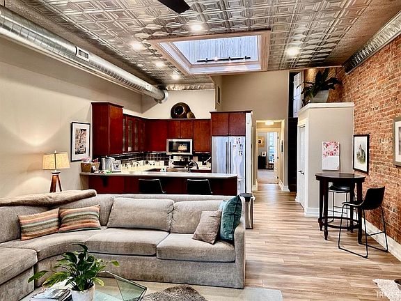 Located in the heart of the Walnut Street Historic District this unique property offers living quarters above a commercial tenant space. Note: The upper floor residential unit could be bought separate from the commercial first floor. The residential unit above could be purchased separately, but it's preferred the entire building be sold as one. The commercial space has been leased to a successful restaurant for over 10 years. Income from the commercial space is $2,000 per month with lease running to December 2025. Property was purchased and gutted in 2009, roof replaced in 2017. Exterior Paint in 2023. This property was done right with quality remodeling and good maintenance. Live upstairs and collect the commercial income or purchase as an investment with commercial and residential income! The living quarters consist of an main floor entry area, a heated garage with 12 ft ceiling and 10ft high garage door that has with water on the ground level; large living room/kitchen combo, 2 bedroom (main floor and upper), 2 bathrooms,main floor laundry, walk-in closets, incredible skylight, and outdoor patio on level 2. The main living area has 11ft ceilings. Other updates: new flooring, custom closets, tiled bathrooms, showers and kitchen, solid surface countertops, security system, incredible new appliances and more. Rare opportunity to live in the heart of Downtown Muncie! Move in ready. See the investment listing for more on the first floor. MATTERPORT TOUR NOW LIVE!