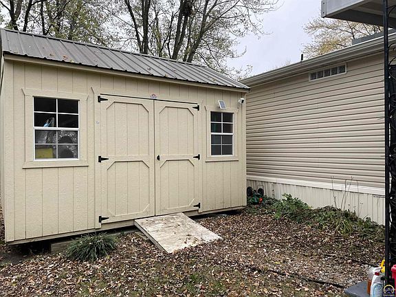 Beautiful mobile home with open floor plan, 3 bed 2 bath, new kitchen appliances, newer flooring, washer & dryer, in South Village. New 10x14 out building and a 2 car carport. A well maintained, landscaped community in Washburn Rural School District. Amenities include: a swimming pool, tennis/basketball court, playground, on-site storage lot for RVs, trailers and campers and 2 storm shelters, 1 handicap accessible. Two small pets are allowed in each household. Pit Bulls are specifically prohibited. $450/mo pad fee includes water, sewer and trash. Credit & background checks required. Don't miss this opportunity to have a great 3bd/2ba home in a quiet neighborhood. Call for a private tour today! Livingroom and dining room furniture negotiable.