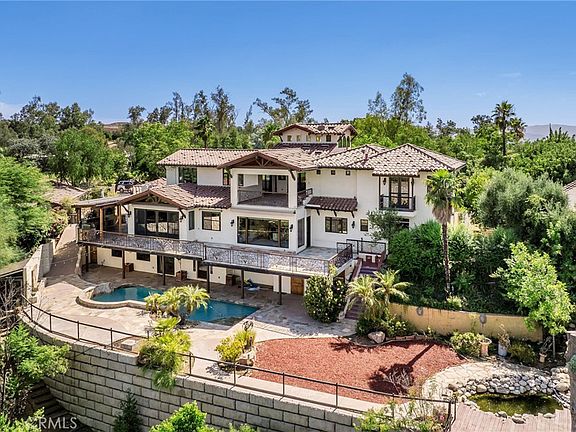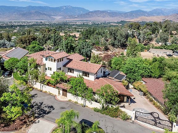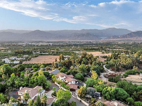 Marvel at the grand illustrious Casa del Cielo, a Spanish mansion in East Redlands. Rebuilt & transformed by the architect/owner in 2011 into a breathtaking mission-style estate. It contains 6077sf, two master suites, two bedrooms, an office, two family rooms, five bathrooms plus two half baths & an ADU. A majestic custom front gate features a striking peacock motif that can accept a stained glass installation. Exterior and interior spaces are adorned with custom-built and imported architectural & artistic features from exotic global destinations, including India, Bali, and Thailand. Eastern and Western design influences combine brilliantly, with Santa Barbara stucco construction and Spanish tile complemented by intricately carved teakwood embellishments & custom-designed inlaid tile, mosaic, & stone. Step through the hand-carved entryway and immediately transcend above the exquisite stone floor medallion & steps below. Then, lift your gaze up to an elegant grand teak foyer, staircase, and banister with a matching bespoke ceiling medallion and imported chandelier. A 350-gallon custom reef tank, central vacuum system, an elaborate Italian sandstone fireplace, master steam-room shower, high open beam ceilings, a woodfire pizza oven, a custom copper range hood, and a gorgeous wine cellar. Wired for a whole-house audio system and central control room to set the mood in every room. The upstairs family room features an Italian marble fireplace, while an adobe fireplace graces one of the two master suites. A full security system includes a magnetic locking front gate, wired for security cameras with remote access, & all-wired windows and doors. The lower level is an ADU with a kitchen & pool bath. Head outside to stroll this approximately 0.8-acre lot, complete with a California native garden featuring mesquite, salvia, lavender, Jerusalem sage, manzanitas, 34 fruit trees (list included), & more! Or take a dip in the in-ground stacked stone-lined swimming pool. A hand-forged wrought iron railing lines the patio & walkway. Finally, the upper balcony offers yet another fireplace & the best view in town! Wonderous sparkling city light views. Steps from the prized Crafton Hills Open Space Conservancy - a haven brimming with hiking, biking & walking trails. In an exclusive neighborhood near Downtown Redlands, Redlands Country Club, Crafton Hills College, & the University of Redlands.