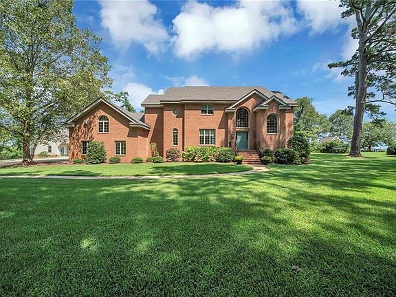 Stately Riverfront home is awaiting you! The two story foyer invites you inside where you will find formal dining room, open concept living room to the sunroom with stunning views. Upstairs you will find all of the bedrooms and each with views of the water. The master suite with fp, a private balcony to enjoy peaceful mornings or evenings on, two walk in closets, Don't miss the in-law quarters where you will find living area, full bath, and bedroom. The carriage house has plenty of storage space in the loft area.