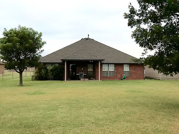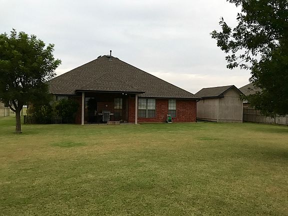 Don't miss this gem in the HEART of Tuttle-Close to downtown Tuttle & all Schools. Features wood-look tile flooring. Study could be a 4th Bedroom. 2 inch faux wood blinds. Spacious Master w/Leopard Print carpet & thick padding. Bath has double vanities of cultured marble, jetted whirlpool tub, spacious tiled shower & large walk-in closet. Kitchen features stainless appliances, built-in range & oven-Lots out storage & counter space through out. Full Pantry. Dining area overlooking backyard. Plantation Shutters in dining & Living Room. Separate Formal Dining Room. Spacious Living Room features tiled fireplace w/gas logs. Laundry room w/storage & sink. Alarm System. 3 car garage w/storm shelter & whole home generator hook up. Generator stays w/home. Outdoor sprinkler system in yard/flower bed. Flag pole in front yard. 12X15 She Shed with heat/air system. Back Patio Pavers perfect for entertaining-Enjoy morning coffee or evening sunsets - spacious, fenced backyard. Come & See!!