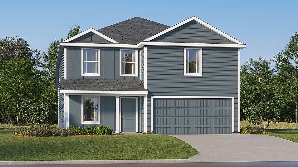 This new two-story home features a luxurious owner's suite on the first level, offering a tranquil retreat with a full bathroom and walk-in closet. A nearby open-concept layout encourages seamless transitions and multitasking between the kitchen, living and dining areas. On the second floor, a versatile game room provides a convenient shared living area near three additional bedrooms.
