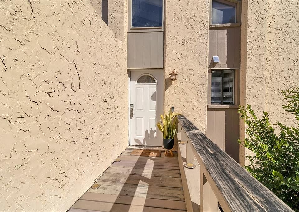 Stunning, Spacious Two-Story Condo in The Springs! Tucked away on the second floor of this prestigious, guard-gated community, this 1,600 sq ft residence offers privacy and security. The bright, open layout features two bedrooms, two bathrooms, and a versatile, large loft, all set among mature trees. Step inside and immediately feel the openness created by dramatic vaulted ceilings, expansive windows, and natural light that pours in from every direction—north, south, east, and west. With five skylights overhead, the home feels connected to the outdoors from sunrise to sunset. Two balconies overlook serene treetops and the sparkling community pool, offering peaceful spaces to unwind and enjoy Florida’s signature skies. The interior has been thoughtfully updated to blend comfort with style. Wood-look tile flooring, modern shaker cabinetry topped with granite, and stainless steel appliances create a timeless aesthetic. A new roof installed in 2024, updated window treatments, energy-efficient WiFi thermostat, and upgraded ceiling fans with advanced lighting features offer peace of mind and enhanced climate control. When the weather cools down, a charming wood-burning fireplace provides the perfect cozy touch. The primary suite is an inviting retreat with floor-to-ceiling windows, private balcony access, a spacious walk-in closet, dual sinks, and a beautifully finished stone shower. The secondary bedroom features its own balcony and tranquil woodland views. Upstairs, the generous loft expands your possibilities—ideal for a home office, guest space, media room, or creative studio—with ample storage throughout. For those who love the outdoors, this home includes a private courtyard-style garden area perfect for hosting guests, enjoying morning coffee, or creating a dedicated play or relaxation zone. Additional private outdoor storage accommodates bikes, kayaks, paddleboards, camping gear, and more, with shared storage available for oversized items. Living in The Springs offers something truly special. Centered around a pristine natural spring, the community provides resort-like amenities: a spring-fed sandy beach, sparkling pool, tennis and basketball courts, walking and jogging trails, horse stables, shaded picnic areas, and a welcoming clubhouse ideal for gatherings of all sizes. Whether you seek peaceful mornings, active afternoons, or memorable evenings with friends, this home offers a rare combination of comfort, beauty, and connection to nature. This is your chance to experience one of Central Florida’s most unique communities. Schedule your private tour today.