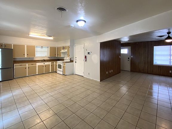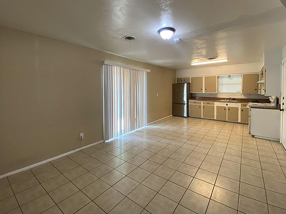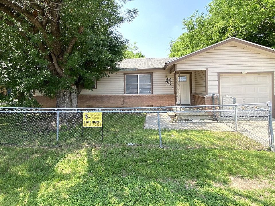 CHARMING 3 bed, 1.5 bath, 1 car garage home! This home will WOW you upon entry with the SPACIOUS living room and open concept floor plan it features. TILE THROUGHOUT and carpet in the bedrooms, makes this home easy to maintain year round! The kitchen is equipped with a refrigerator and oven/stove. Washer and dryer are included and can be found in the garage. All three bedrooms are spacious and feature a ceiling fan in each to help keep you cool during those TX summers. One room has private access to the full bathroom! Take a step outside and be AMAZED at the large fenced in backyard with a patio to place outdoor furniture.