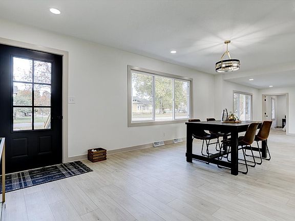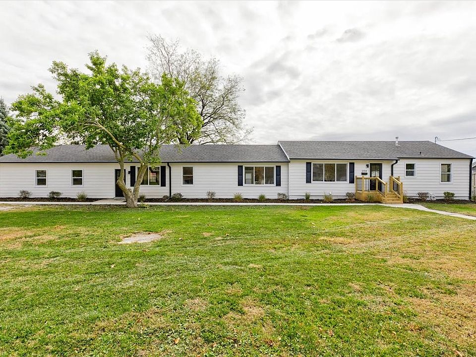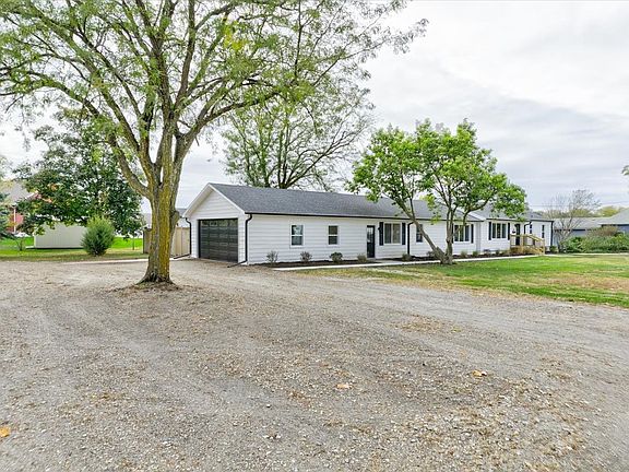 Discover this beautifully renovated ranch offering over 2,300 sq ft of finished living space — perfectly combining modern design with small-town charm. Step inside to a bright open floor plan featuring new flooring throughout, recessed lighting, and spacious gathering areas ideal for entertaining. The inviting living room centers around a stunning floor-to-ceiling stone fireplace, while the dining area flows seamlessly into a beautifully updated kitchen with wood cabinetry, quartz countertops, tile backsplash, and stainless-steel appliances. This expansive home includes multiple living spaces, 4 bedrooms, and refreshed bathrooms with contemporary finishes. The sunroom provides the perfect flex space for a home office, playroom, or cozy sitting area with access to the fenced backyard. Enjoy a private outdoor retreat on the patio shaded by mature trees. The property also includes a 2-car attached garage plus an additional 1-car detached garage for extra parking or workshop space. The lower level is ready for living with egress window and sump pump. All situated on just blocks from schools, parks, bike trails and downtown Madrid amenities. Move-in ready and thoughtfully updated inside and out — this home is truly a must-see!