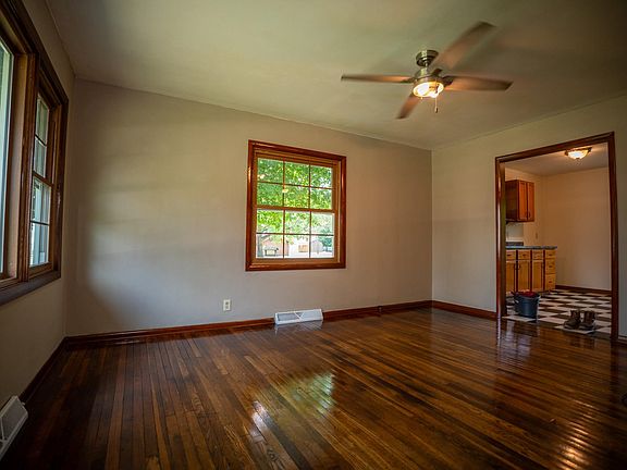 This cute ranch on a corner lot in Holcomb is in move-in condition. As you walk in the front door you are greeted with a nice living room with a big window and beautiful wood floors. The kitchen is off the living room and has appliances that stay and a deck off the back of the house. There are 3 bedrooms and 1 full bath that finish off this home's main level. The basement is off the kitchen and has a few finished rooms. The detached garage is out back and mature trees shade the property.