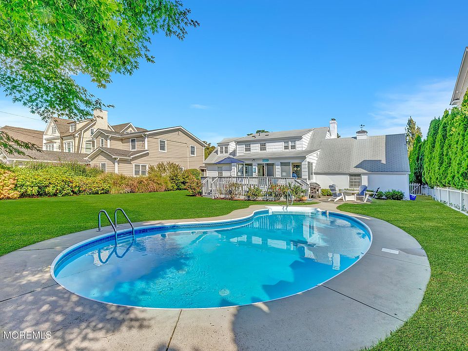 JULY SUMMER RENTAL for $49,000. This rental is an amazing location as it is just two blocks to the beach & boardwalk, one block to the paddles & tennis courts, and very close to downtown Sea Girt resturants. The park like backyard offers a deck and a patio with a propane fire pit that overklooks a heated pool and deep yard! Two first floor bedrooms and a full bathroom is great for folks that want to avoid stairs. Second floor offers the primary en suite, another bedroom and a hallway bathroom. The sunny, great room off the back of the home offers a wonderful dining area as well as another lounge and TV area. Rental Sleep 8 (1 King, 1 Queen, 4 twin beds). No smoking & No vaping in the house. A small to medium hypo-allergic dog is negoatiable.