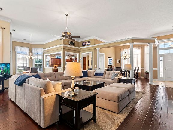 Your wait is over! Walk into this beautifully maintained home with gleaming wood flooring and open floor plan. This desired Brookhaven model features soaring 12' ceilings in living room, dining room and breakfast nook area. Featuring 4 bedrooms, 3.5 baths with wood flooring in living room, dining room and master bedroom and walk in closet. Spacious master bath features double sinks, garden tub and separate shower. Located in the gated community of Willow Bay in The Bays. There is natural gas available to convert. The kitchen features abundant cabinets and counter space, under cabinet lighting, a work island with breakfast nook area. Sip that cup of coffee and watch nature while sitting in a 14x14 tiled screen porch with a privacy rear yard which backs up to woods. Upstairs features a 4th bedroom and full bath which leads into a large finished bonus room which is perfect for an office, exercise room or media room. Upgrades are a newer roof, hot water heater and HVAC system. There is 3 zone heat and air. Some additional features are architectural columns, crown molding, chair rail and pocket doors. Amenities of the community include 2 pools, clubhouse with exercise room with fireplace and full kitchen, outdoor pavillion with fireplace and full kitchen, tennis and pickleball courts, children playground, soccer fields plus more. Only a golf cart ride away from shopping. Don't pass this one by! All square footage is approximate and not guaranteed. Buyer is responsible for verification.