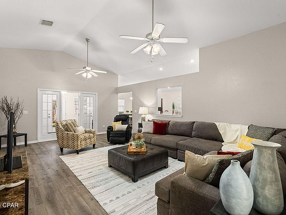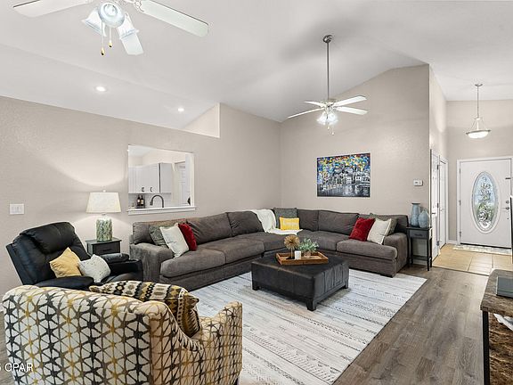 At 204 Windsor Way, meticulous care meets everyday convenience in one of Panama City Beach's most consistently well-kept neighborhoods. This single-level, 1,796-SF, 3-bed/2-bath residence has just been freshly painted and lives clean and contemporary with resilient vinyl flooring throughout and tile in the kitchen and baths. The heart of the home is an updated cook's kitchen—granite countertops, shaker cabinetry, and brand-new appliances—framed for casual gatherings and efficient daily use. A rare bonus is the fully air-conditioned Florida room at the rear of the home: a bright, flexible extension of the living space that invites morning coffee, afternoon reading, or an easy overflow when hosting. Outside, thoughtful landscaping and a manicured lawn underscore the home's turn-key condition. Palmetto Trace is prized for its community fabric and amenities—residents enjoy sidewalks that link the neighborhood, green spaces, and two community pools—placing everyday recreation just steps from the front door. Moments from Pier Park's shopping, dining, movies, and live-music venues, the address delivers the walkable/golf-cart lifestyle that defines this central PCB corridor, and the beach is a quick cruise away. Adjacent Frank Brown Park adds a city-scale backyard with ball fields, trails, playgrounds, and an aquatic center; nearby markets and daily conveniences (including Earth Fare) simplify errands, while ongoing regional investment along Highway 79—including the new hospital campus—continues to elevate long-term appeal. Inside, the split-bedroom plan gives the primary suite comfortable separation, while secondary bedrooms flex easily as guest rooms or a dedicated office. Practical upgrades—newer finishes, hard-surface floors end-to-end, and that climate-controlled sunroom—pay off in both livability and low maintenance. Offered mostly furnished (with limited exclusions; terms negotiable), and with a well-kept golf cart available to convey with an acceptable offer, this is central PCB living made easy—quiet street, strong community, and a move-in-ready home close to everything.