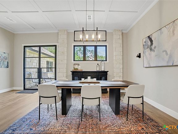 Stone fireplaceStylish modern steel doorsTexas-sized bbqHigh ceilingsWarm wood floorsStainless steel appliancesBuilt-in oven