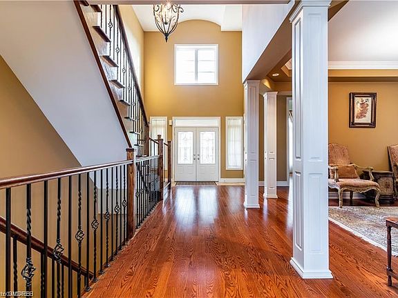 BEAUTIFULLY CRAFTED "CHATEAU SERIES" FERNBROOK BUILT BUNGALOFT IN BRONTE CREEK! SURROUNDED BY ALL THAT NATURE HAS TO OFFER WITH SCENIC WALKING TRAILS, PARKS AND PICTURESQUE RAVINE IN A CHILD FRIENDLY NEIGHBOURHOOD. THE SOUGHT AFTER, OPEN CONCEPT LAYOUT OF THIS HOME WILL BE SURE TO IMPRESS OFFERING A MAIN FLOOR MASTER BEDROOM, HOME OFFICE AND A LIVING ROOM FEATURING COFFERED CEILINGS, DESIGNER ENTRANCE COLUMNS & GLEAMING HARDWOOD FLOORS. A FANTASTIC GOURMET CHEF'S KITCHEN HAS EVERYTHING ONE COULD DESIRE, INCLUDING AN ENORMOUS CENTER ISLAND WITH BREAKFAST BAR AND GRANITE CUSTOM STONE RANGE HOOD! THE FAMILY SIZED BREAKFAST AREA BOASTS A DOUBLE DOOR WALK OUT TO A BEAUTIFUL BACKYARD. ENJOY WARM FAMILY GATHERINGS IN THE SOARING 2 STORY FAMILY ROOM FEATURING MASSIVE PICTURE WINDOWS OUT LOOKING THE TRAQUIL REAR YARD SETTING. PROFESSIONALLY FINISHED LOWER LEVEL IS AN ENTERTAINERS DREAM! OPEN CONCEPT MEDIA ROOM FEATURES GAS FIREPLACE WITH A FLOOR TO CEILING STONE MANTLE, POT LIGHTS & CUSTOM BUILT-INS. BEAUTIFULLY CRAFTED HOME IS A MUST SEE.