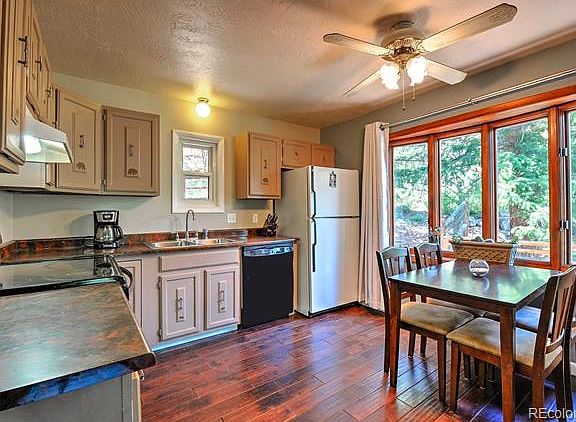 Great Mountain Retreat at the end of a cul de sac, backing up to the mountains. Fenced yard with lawn and dog run. Lots of aspens, pines and a ton of parking. Open floor plan with hardwood floors, custom fireplace, spacious kitchen, new windows, remodeled bath, and a huge master suite. With three bedrooms and two baths this home has an excellent floor plan or could be a great rental investment. Walk to the lake or enjoy a stroll along the river to historic downtown Georgetown.